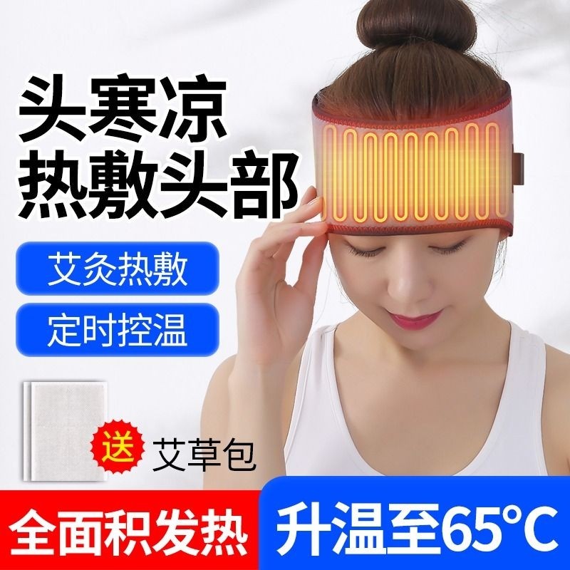 艾灸头部热敷帽额头防风保暖月子帽偏头痛加热神器助眠理疗带发热