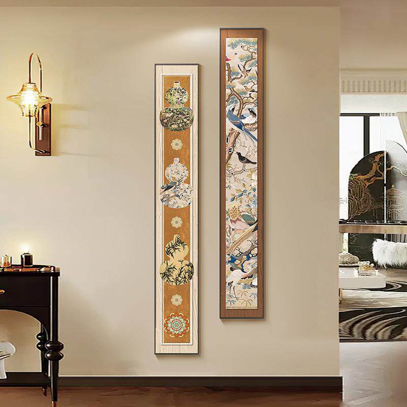 新中式花鸟入户玄关装饰画高级感中古风走廊过道挂画艺术竖版新款