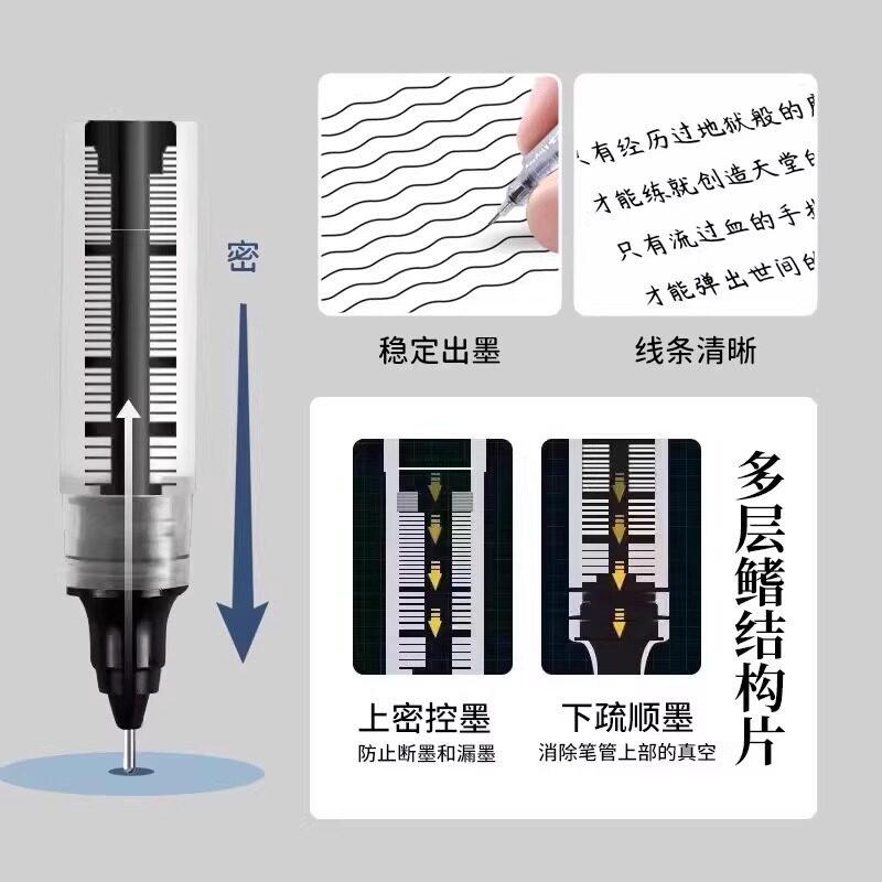 直液式走珠笔速干大容量开学考试专用红直液笔0.5mm针管式彩色中性笔速干学生用黑色水笔蓝色红色笔水性笔