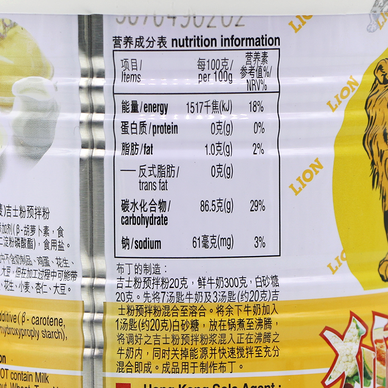 狮牌吉士粉预拌粉300g盘挞蛋挞披萨布丁泡芙蛋糕卡士达粉月饼原料