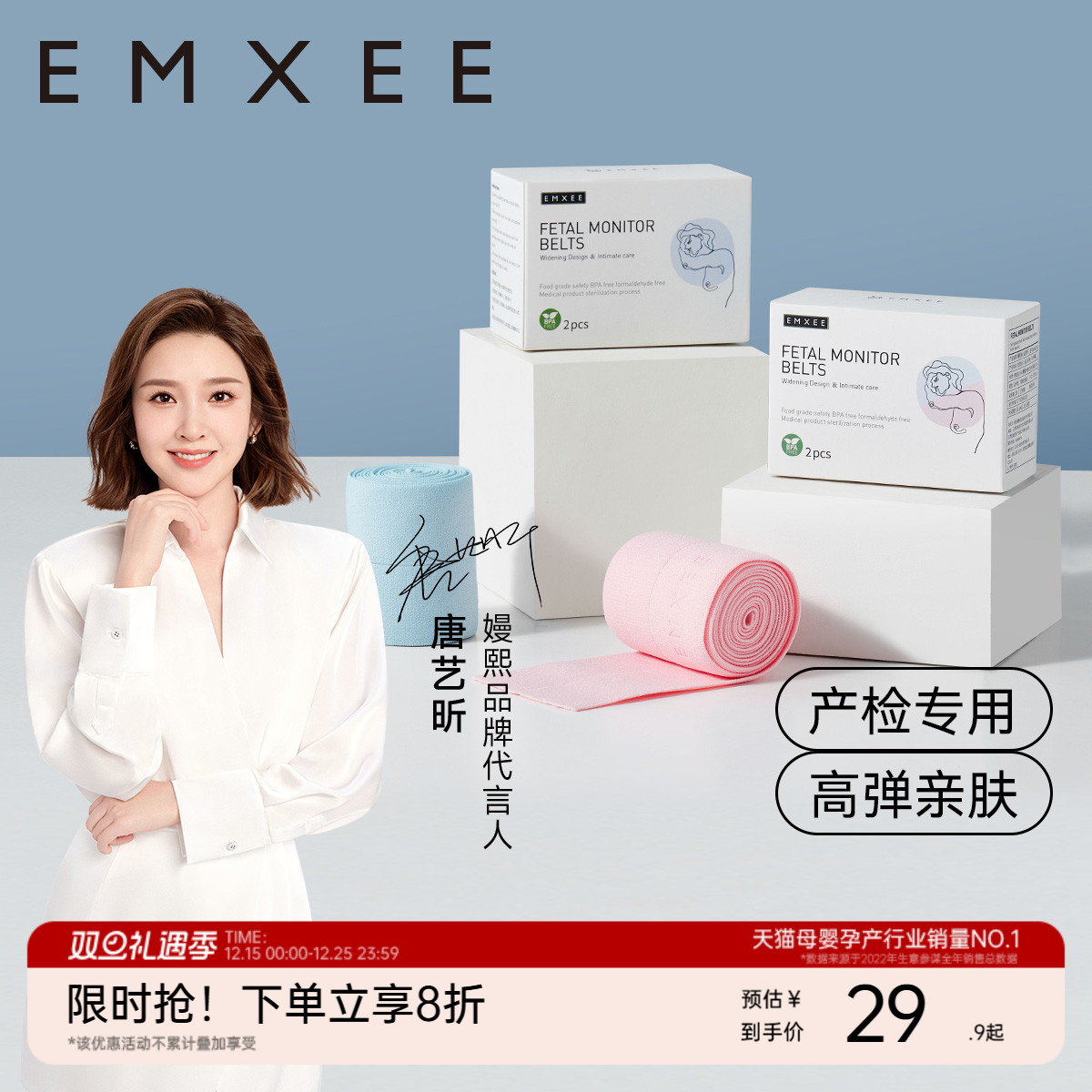 嫚熙胎监带胎心监护带孕妇监测带监护带弹力产检绑带托腹蓝色2条