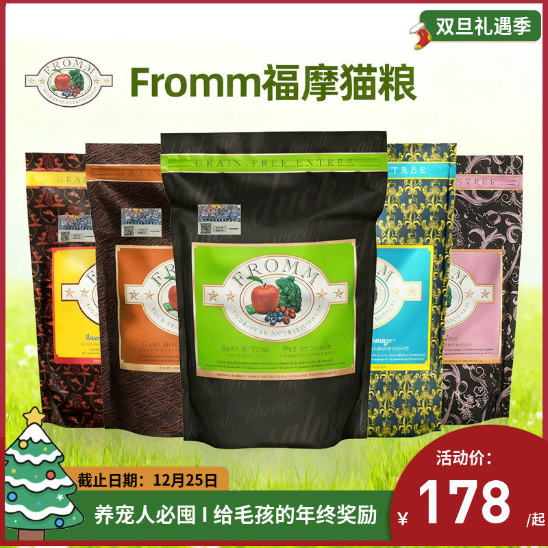 Fromm福摩天然无谷三文鱼鸭肉牛兔肉幼成全猫粮绿福摩4磅10磅金装