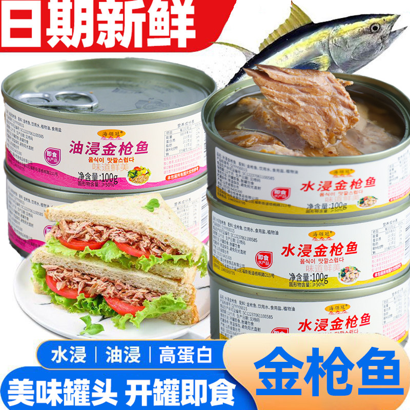 金枪鱼罐装即食解馋油浸水浸鱼肉熟食品金枪鱼三明治寿司沙拉食材