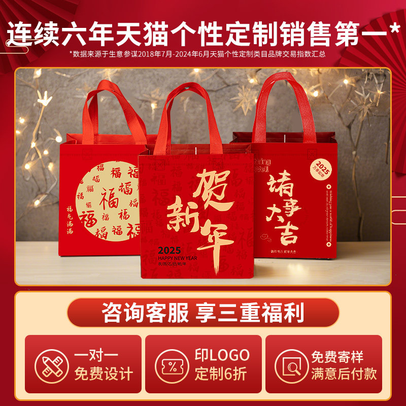 推荐理由:2026新年礼品袋手提袋马年礼物包装袋元旦红色伴手礼无纺布袋定制