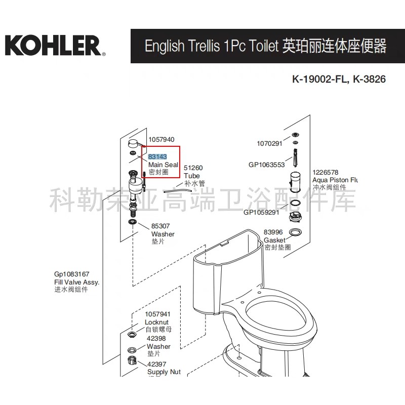 83143封水片科勒原装正品马桶坐便器水箱进水阀密封圈垫片配件