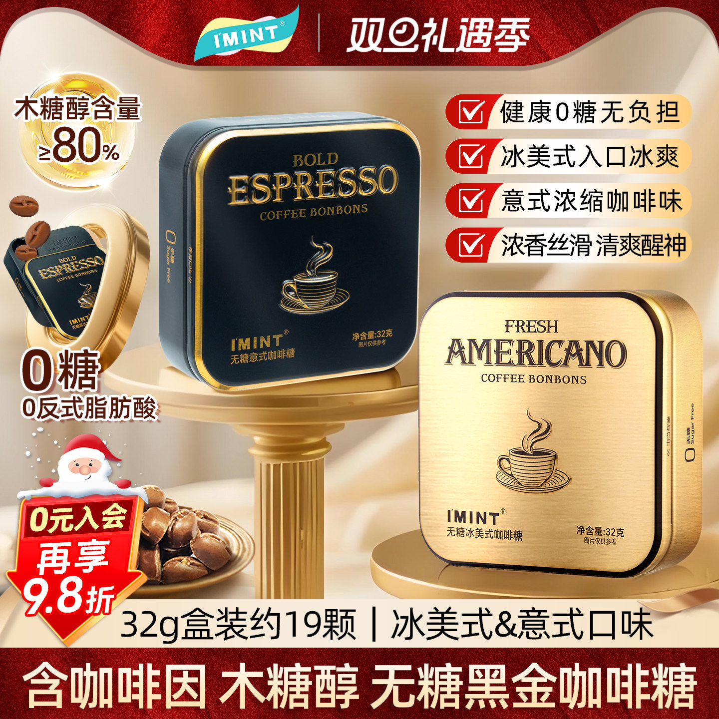 IMINT无糖冰美式意式咖啡糖浓香犯困清凉提神木糖醇黑金咖啡糖z