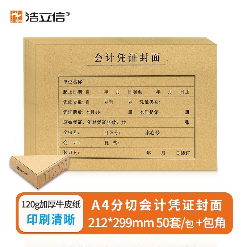 A4会计凭证封面竖版牛皮纸装订封皮a4大号横版通用记账凭封底财务