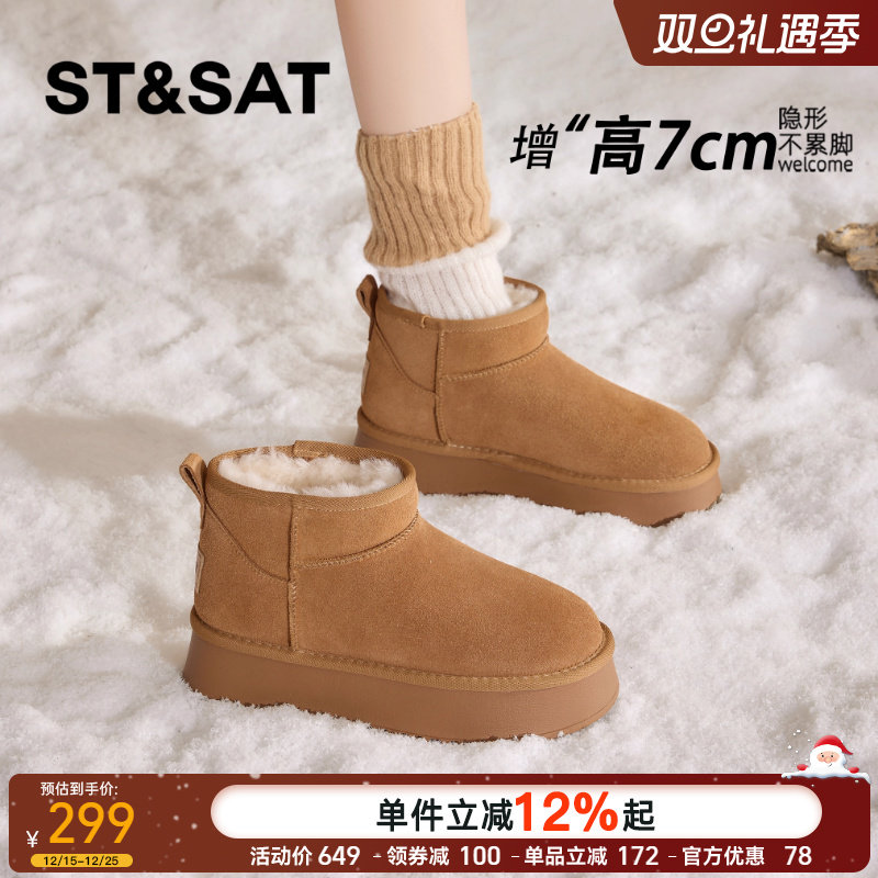 星期六7CM内增高雪地靴女厚底增高百搭加绒加厚保暖棉靴高帮女鞋