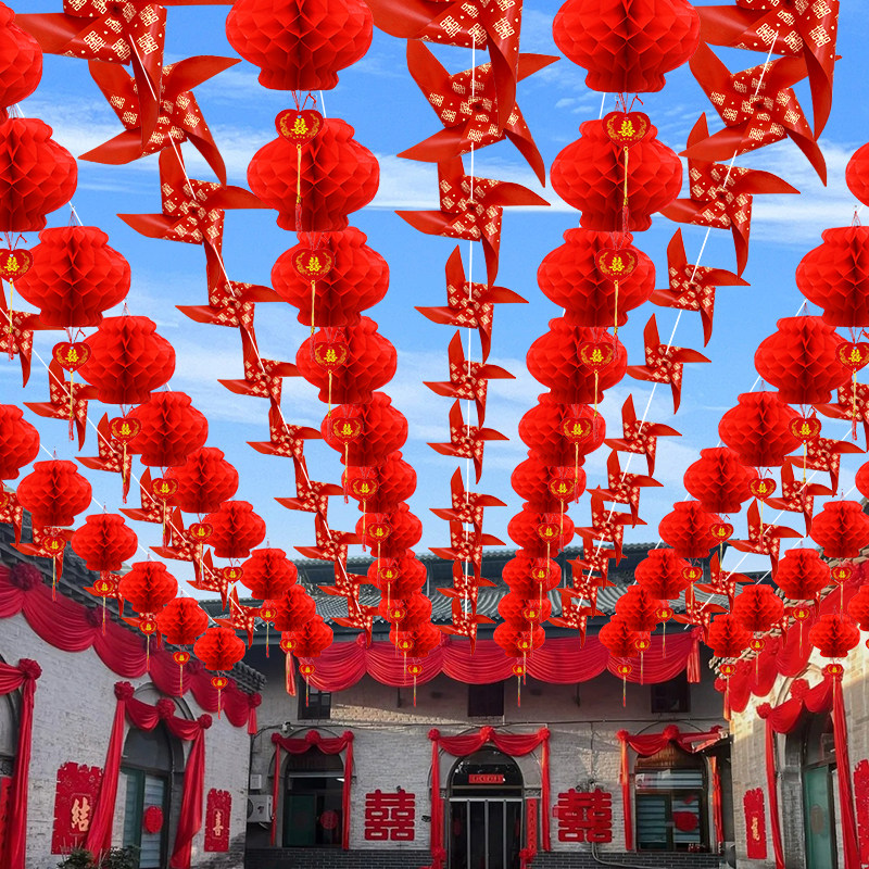推荐理由:院子婚庆装饰彩旗灯笼农村布置婚房喜字拉花结婚用品大全室外婚礼