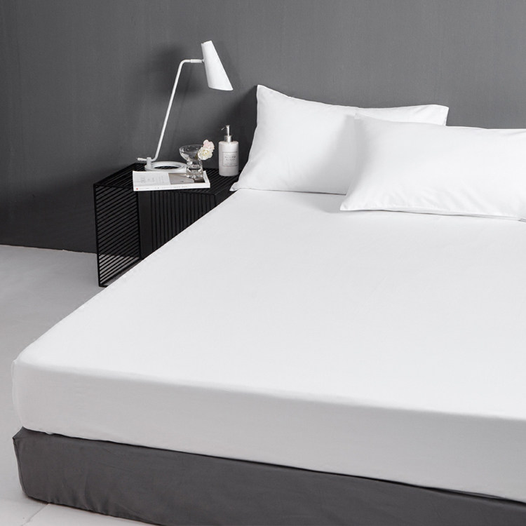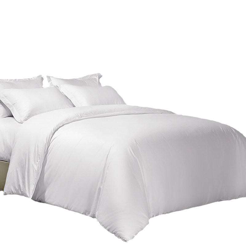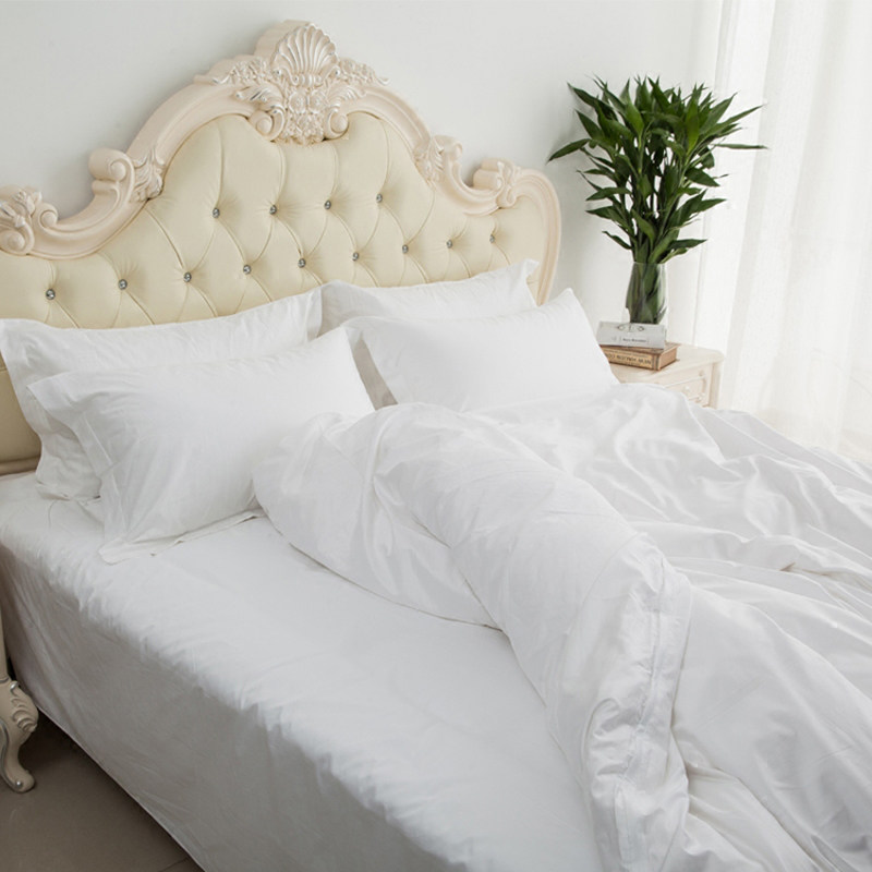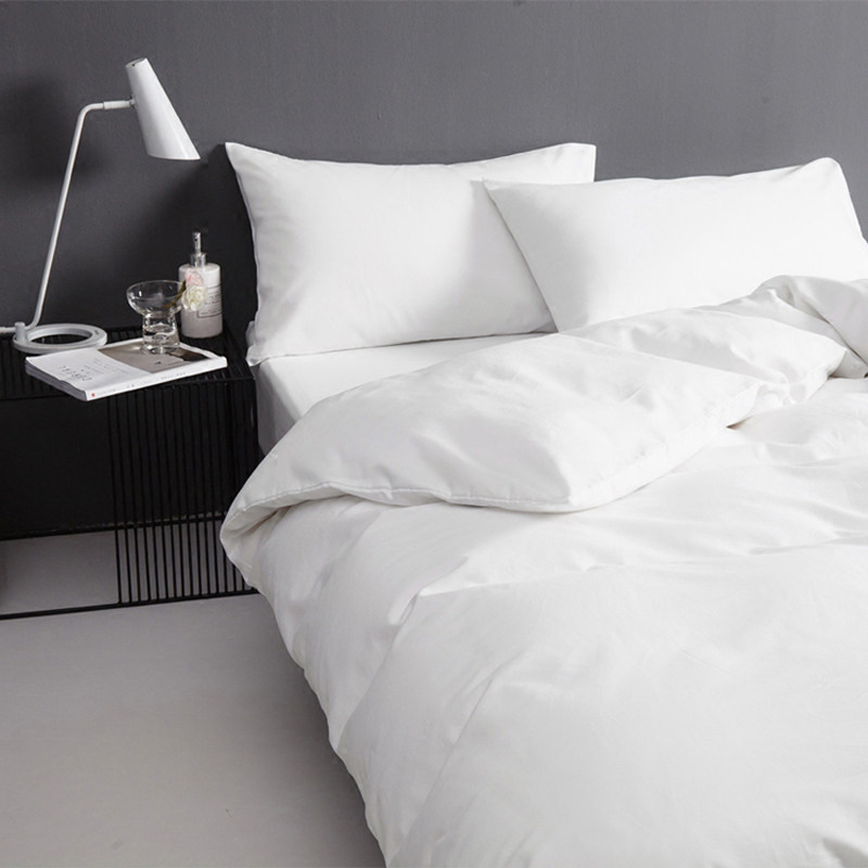 酒店民宿纯白色涤棉简约宾馆快干床单被套三四件套床笠式床品套件