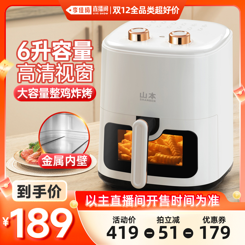 【李佳琦双12全品类超好价】山本空气炸锅智能多功能大容量薯条机