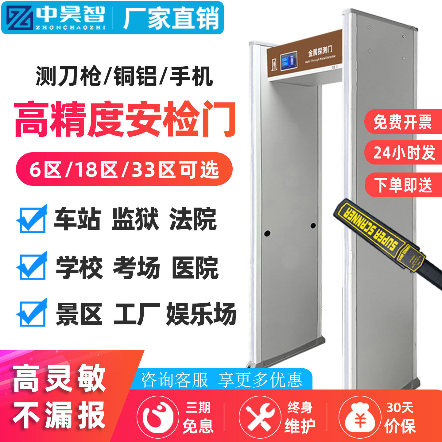 推荐理由:金属探测安检门高精度学校考场医院地铁智能检测刀枪手机安全设备