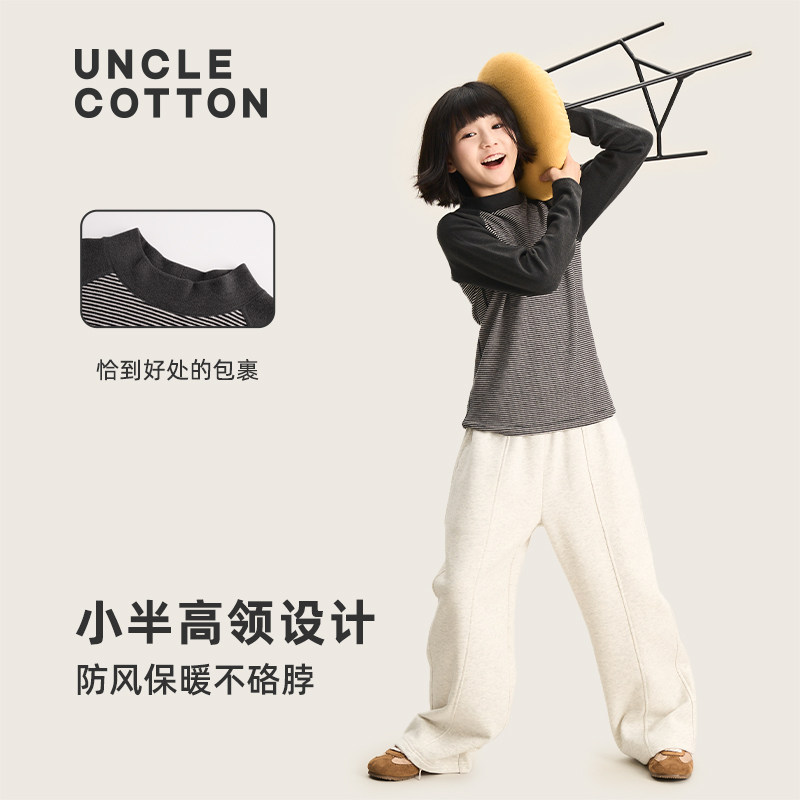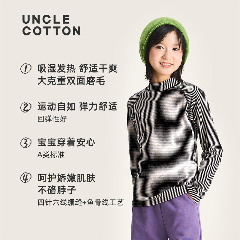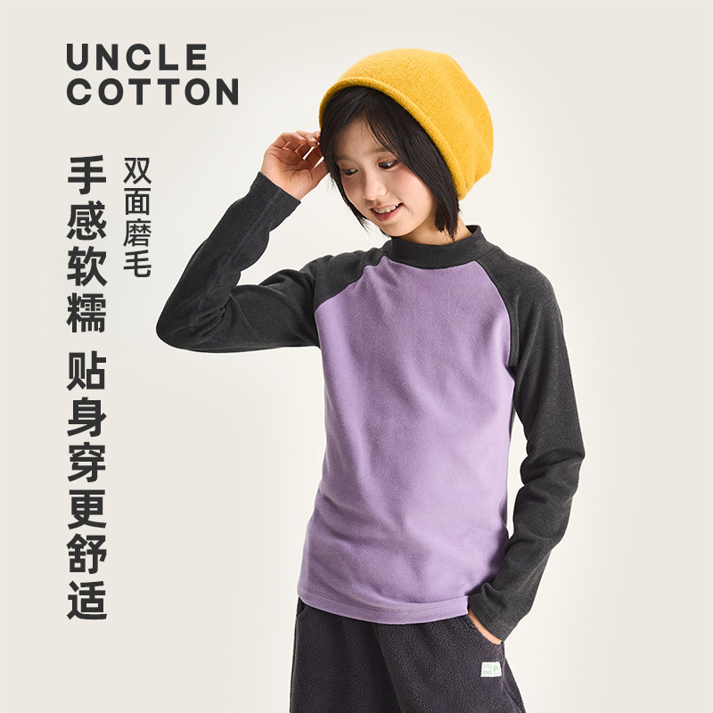 推荐理由:【两面暖绒打底衫】棉叔叔女童秋冬舒适鱼骨线小半高领保暖T恤