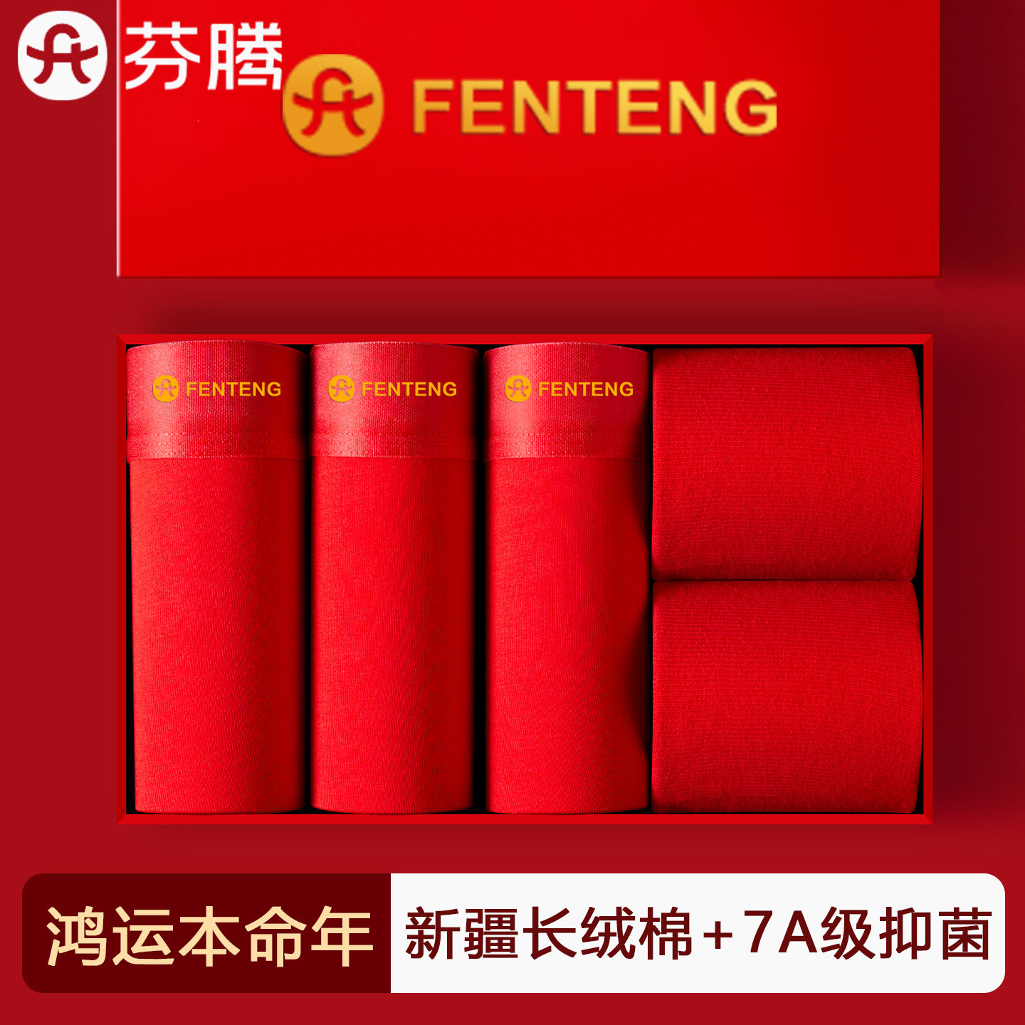 芬腾内裤男士本命年大红色纯棉抗菌2026属马年男生结婚平角短裤头