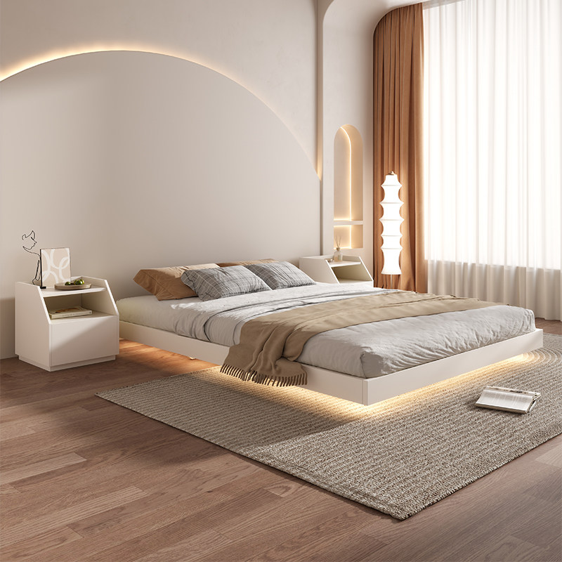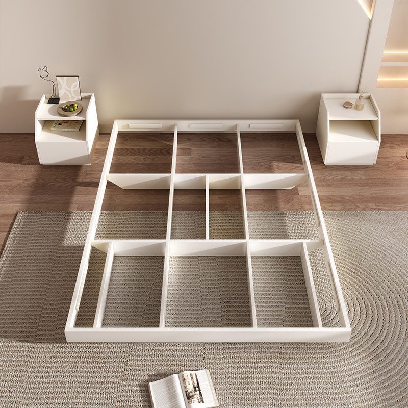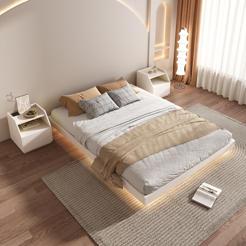 新无床头床现代简约1.5米小卧室榻榻米架子床白色次卧悬浮地台床