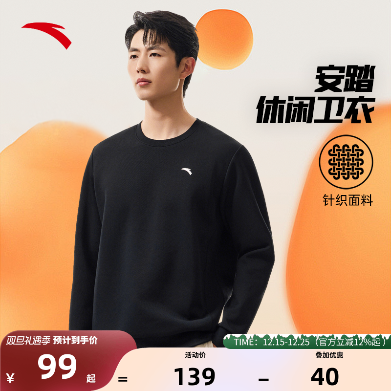 安踏加绒卫衣男款2025新款冬季男士加厚长袖正品休闲针织套头衫