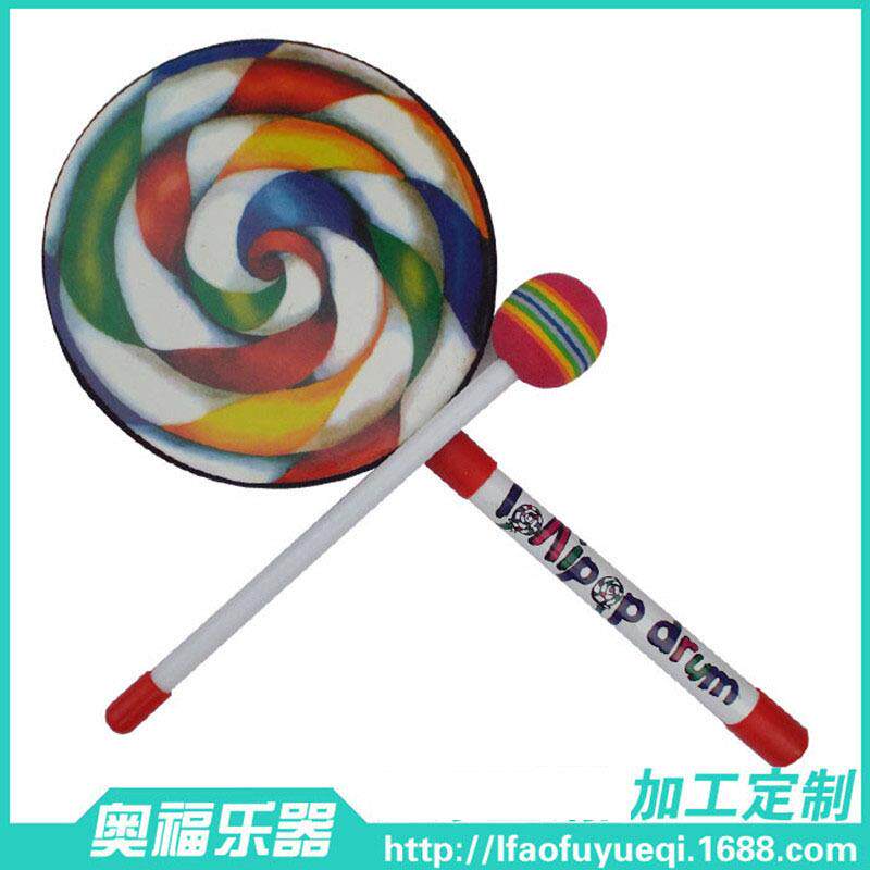 促销奥尔夫儿童打击乐器亲子教具 大风车音乐宝宝敲鼓6寸棒棒糖鼓