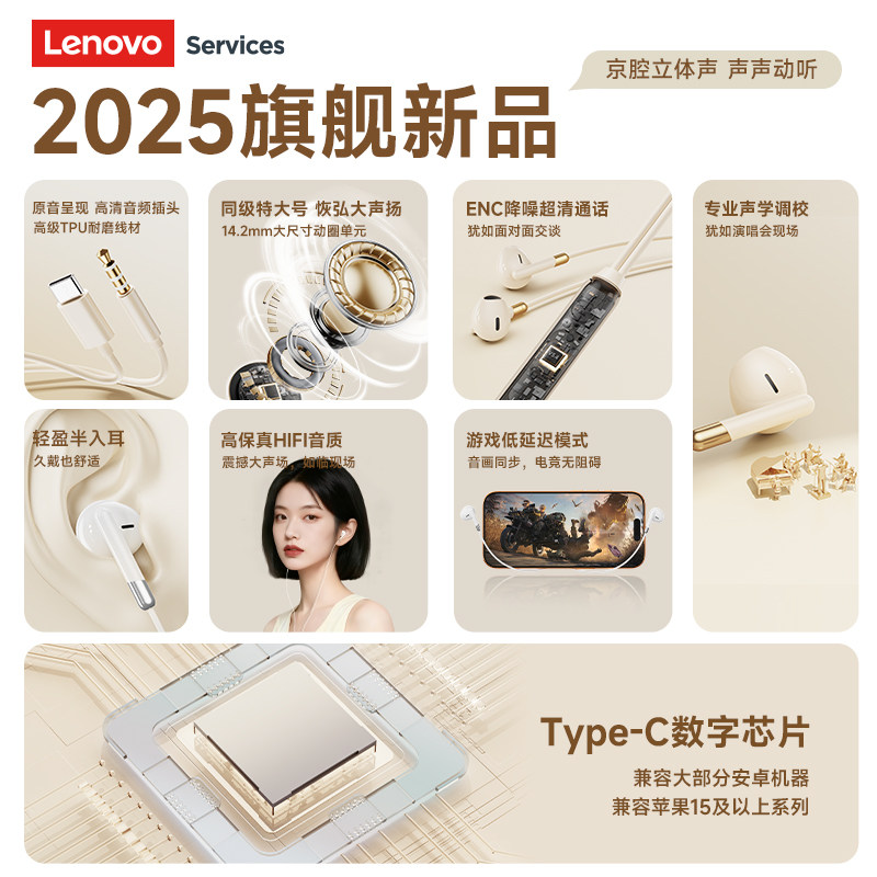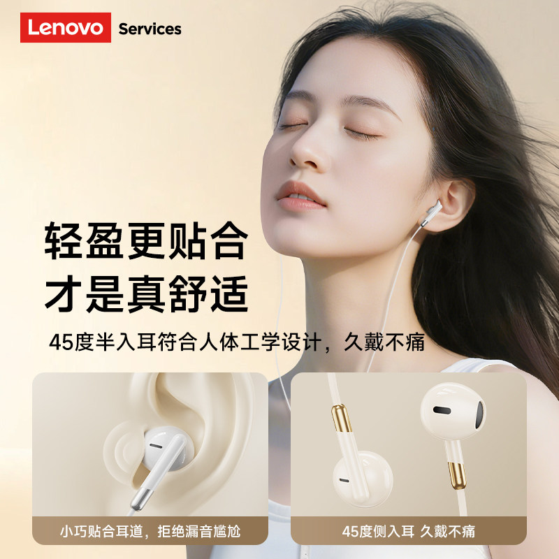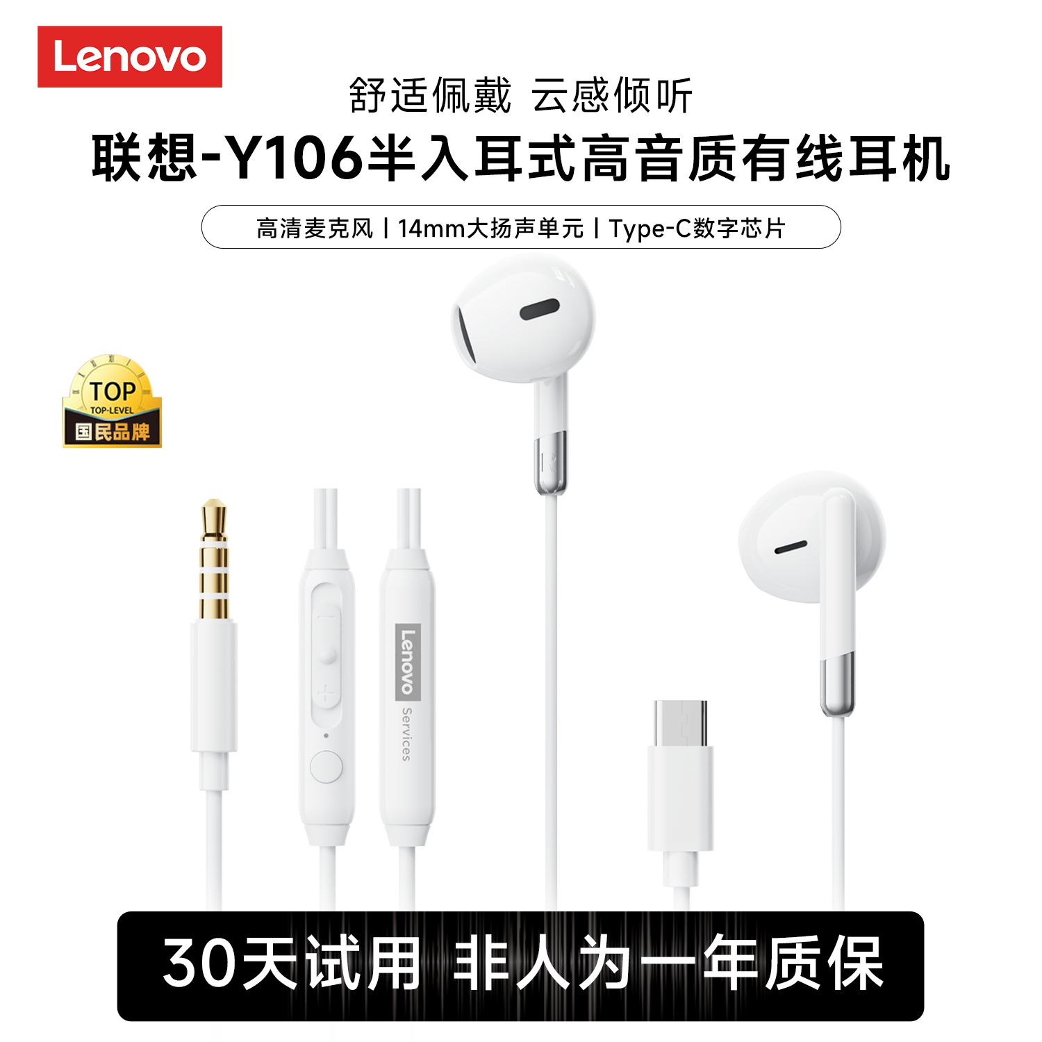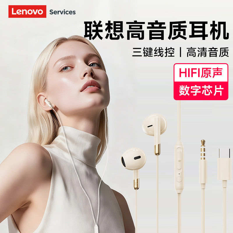 联想耳机有线3.5mm圆头typec接口半入耳高音质适用手机电脑笔记本
