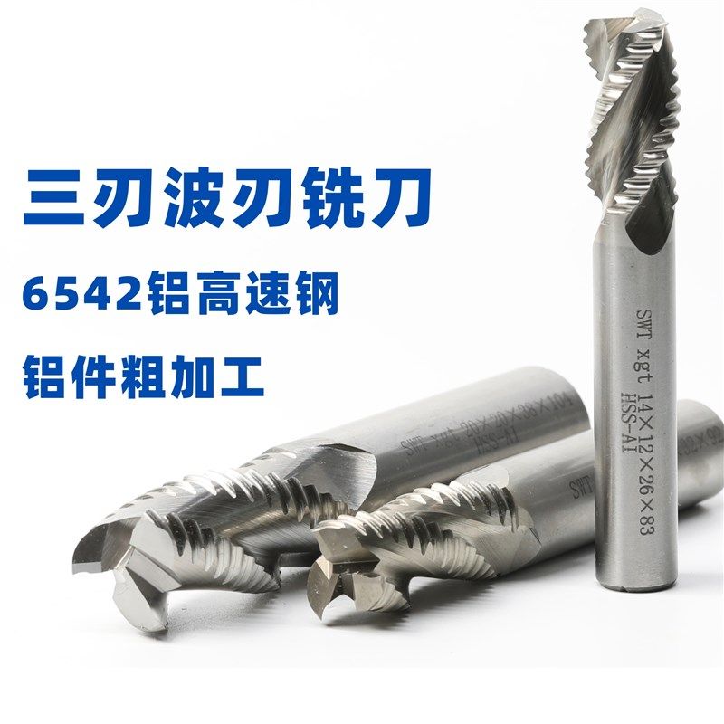 西南工具数控超硬高速钢直柄波刃铣刀 过中心G型 3刃铝用粗加工