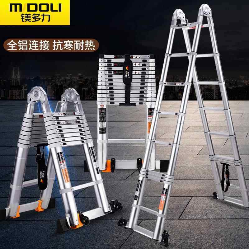 镁多力伸缩梯子铝合金多功能梯全铝折叠人字梯家用工程竹节防冻款