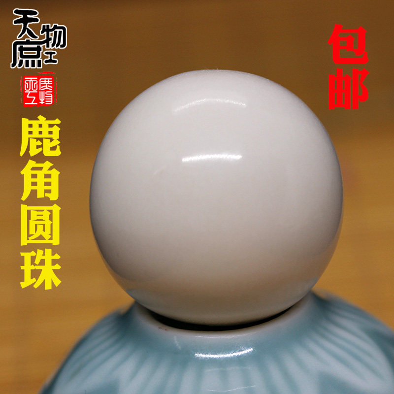 天然鹿角原白色圆珠两通高密带血丝黄斑纹配珠佛珠手串配饰DIY饰