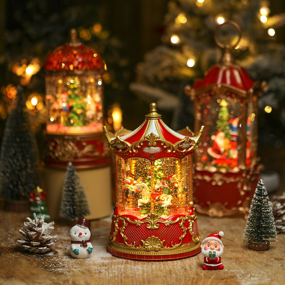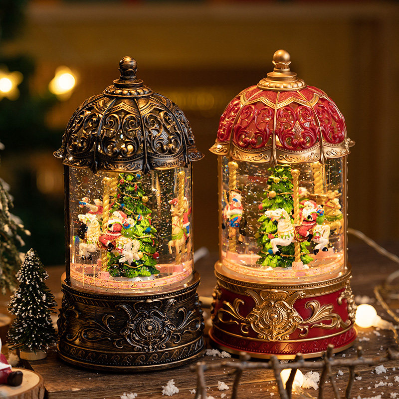 圣诞节树旋转木马飘雪雪花水晶球款音乐盒八音盒儿童生日礼物摆件