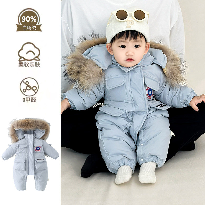 婴儿羽绒服新生幼儿冬季加厚保暖连体衣男宝宝韩版洋气长款连身服