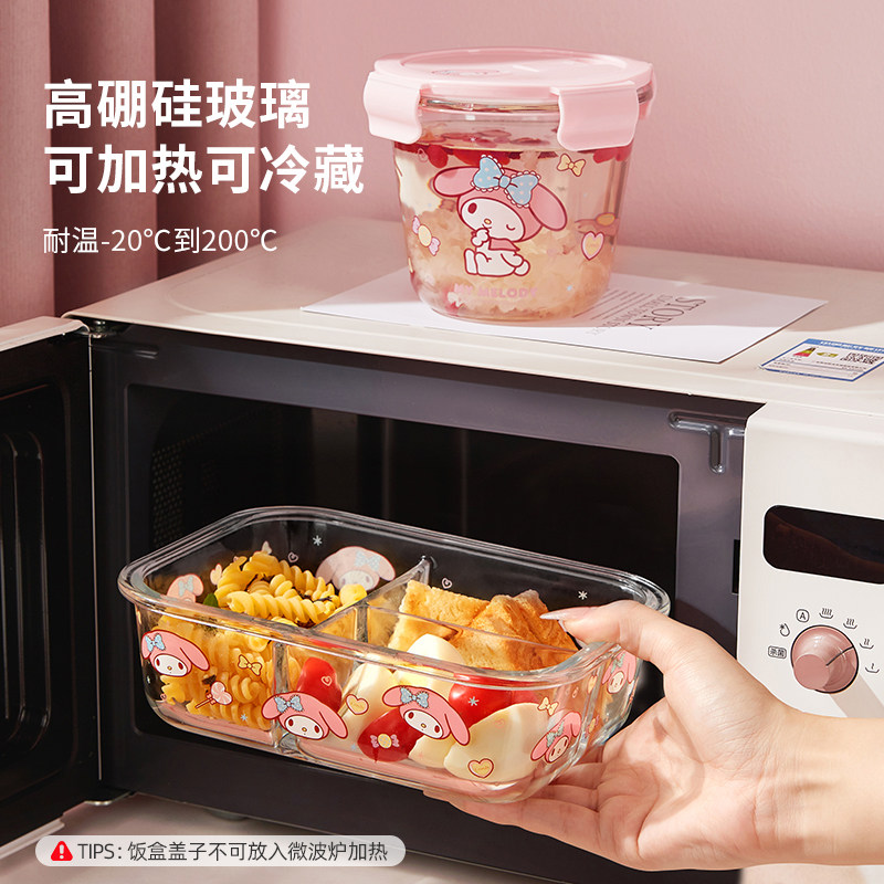 三丽鸥玻璃饭盒微波炉加热专用上班族2025新款分隔便当盒保鲜餐具