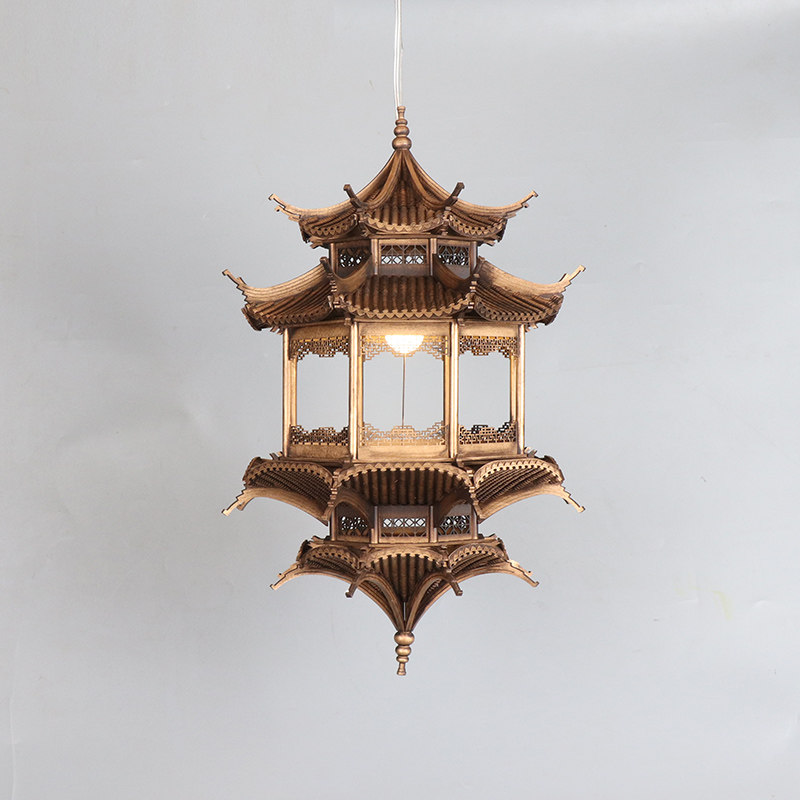 新中式日式古铜色八角亭古建筑镜像倒影枯山水造景玄关会所吊饰
