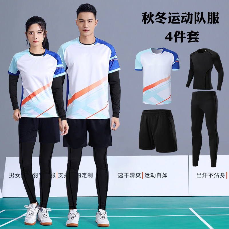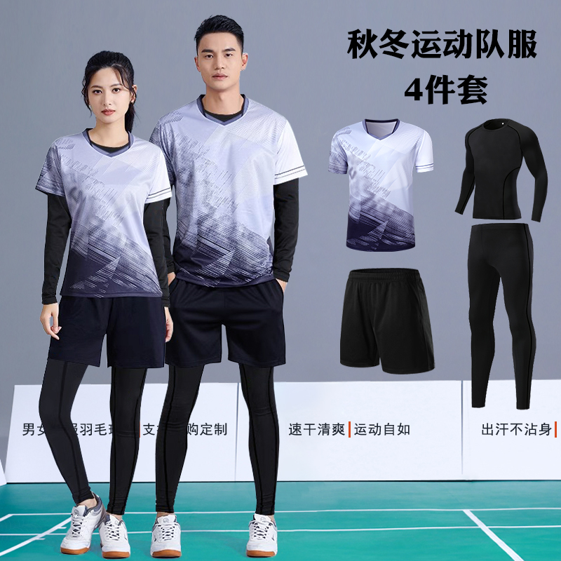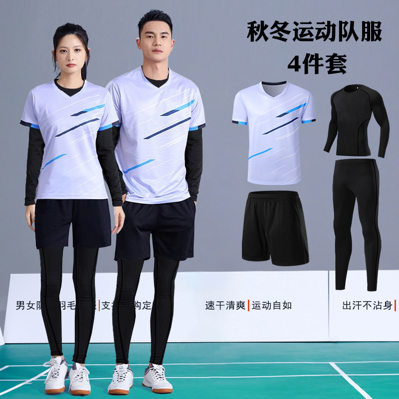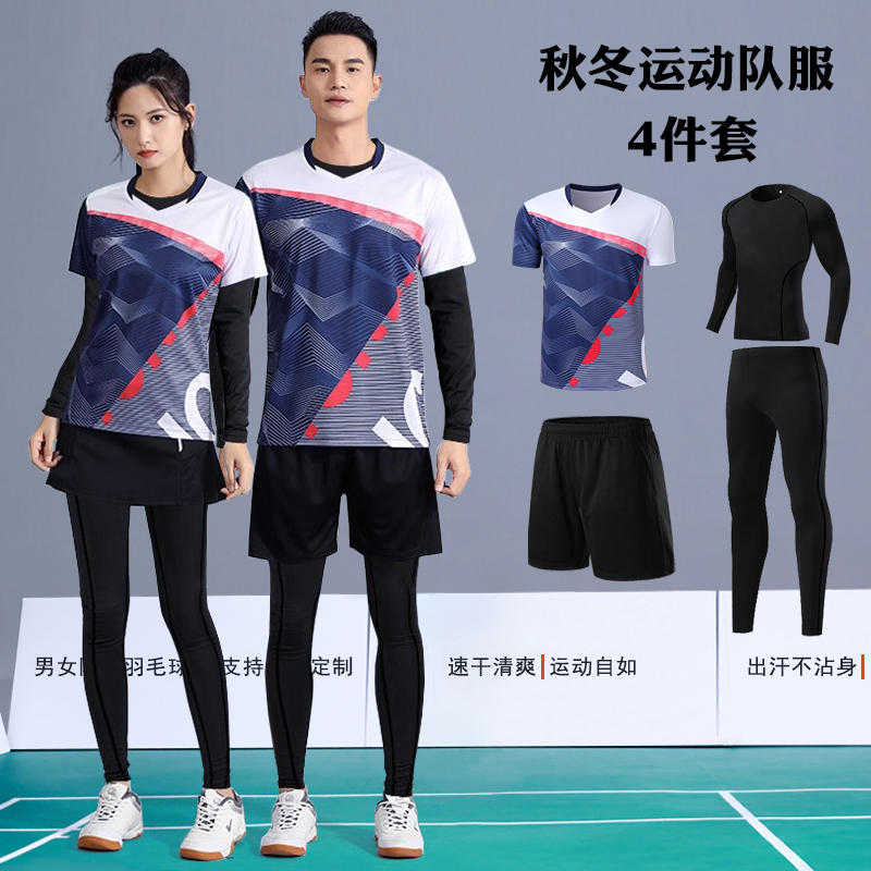 推荐理由:4件套羽毛球服秋冬套装女款速干乒乓球排球男款训练比赛队服定制