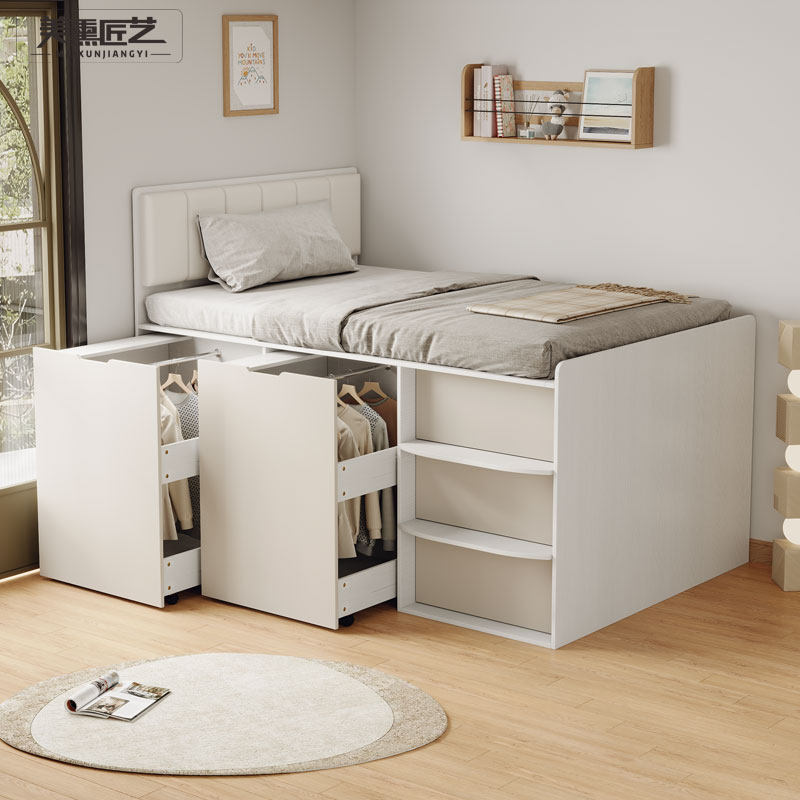小户型储物床高箱床抽屉床收纳榻榻米侧翻单人床1.2米省空间半高