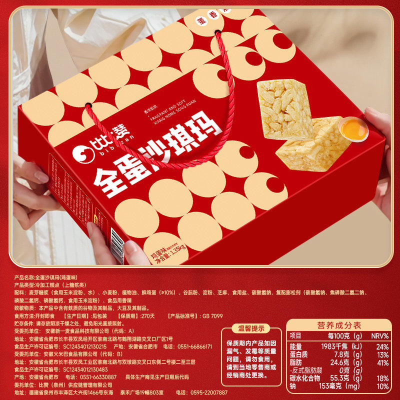 推荐理由:比比赞沙琪玛年货礼盒送礼早餐面包健康零食小吃休闲食品批发BY