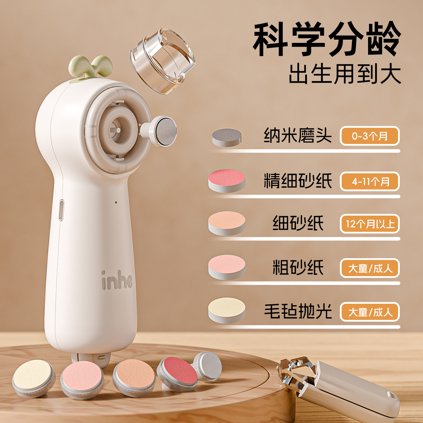 英禾婴儿电动磨甲器新生宝宝专用指甲剪刀儿童指甲钳打磨神器