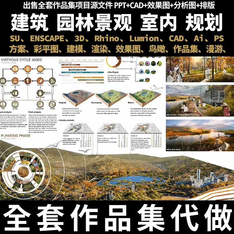 ps环境环艺设计建筑景观室内城市规划全套方案作品集制作