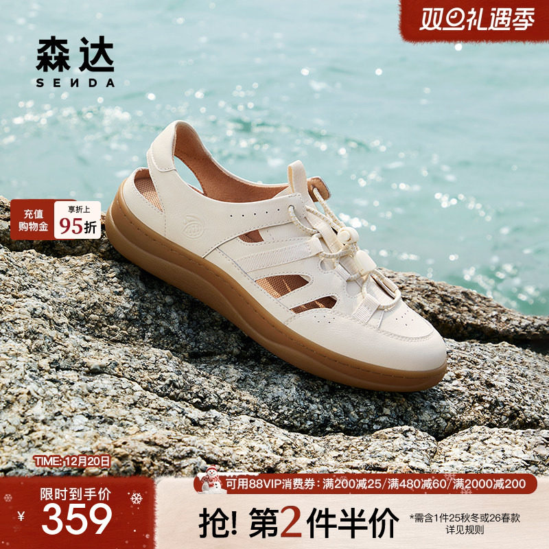 森达麦浪可可溯溪风运动凉鞋女猪笼罗马凉鞋夏季休闲软底洞洞女鞋
