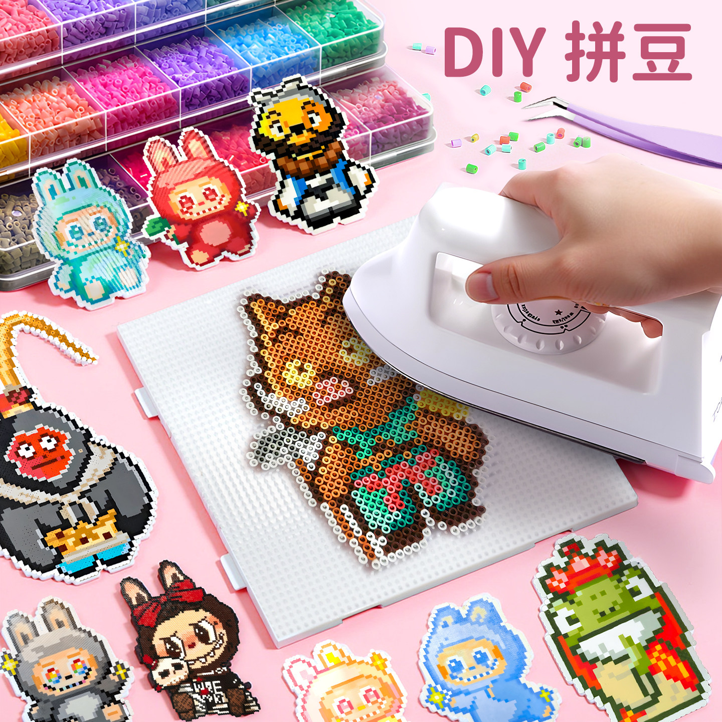 精品拼豆女孩手工diy材料包套装融合豆豆玩具全套工具熨斗补充包