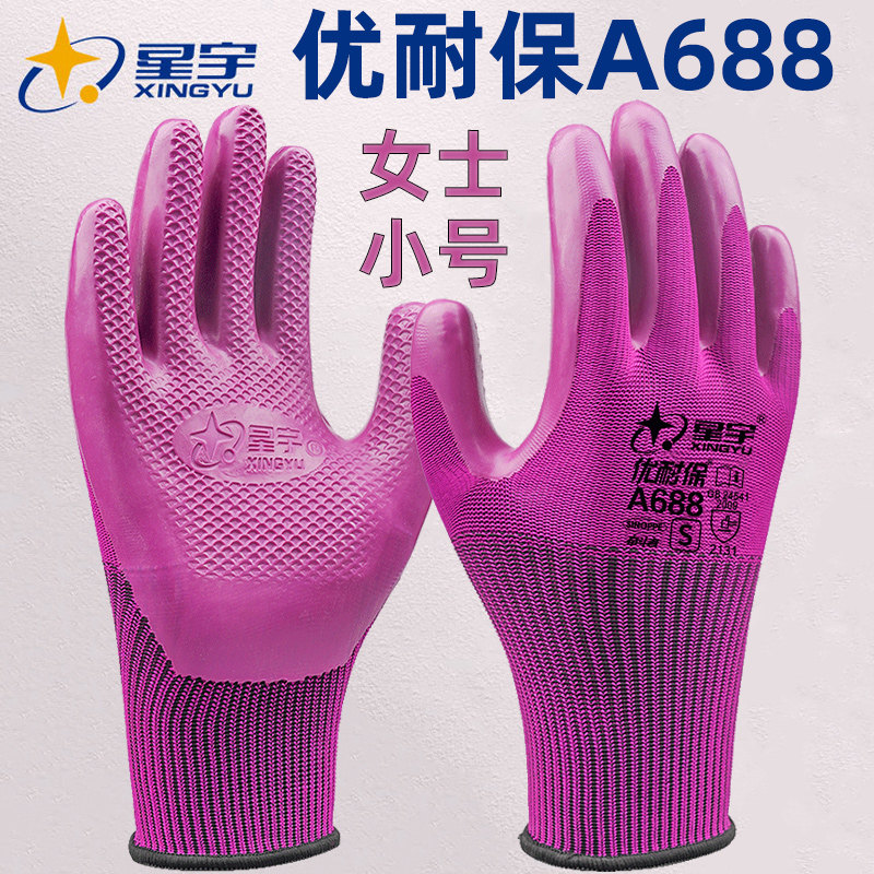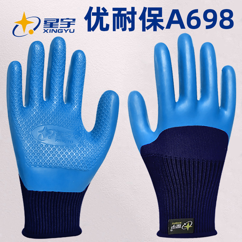 星宇优耐保A688劳保手套防滑耐磨工作工地干活带胶皮橡胶劳动防护