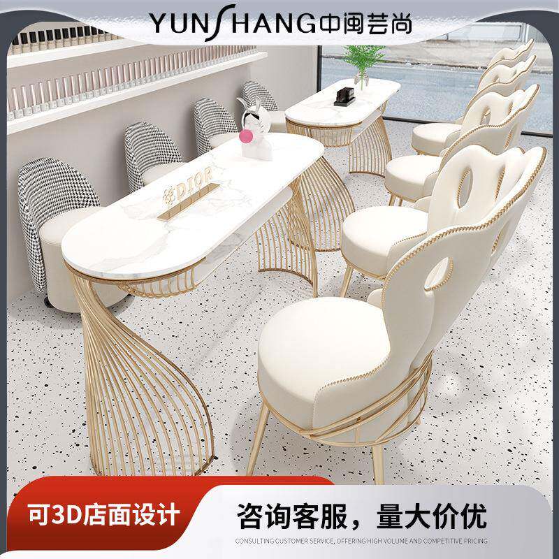 中闽芸尚北欧岩板网红美甲桌椅套装组合铁艺单人双人美甲店美甲台