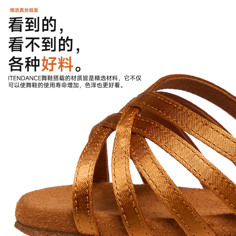 ITENDANCE专业拉丁舞鞋女成人中高跟缎面软底国标舞伦巴恰恰舞鞋