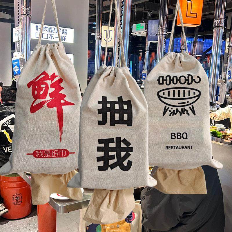 烧烤店专用抽取式卫生纸袋悬挂式束口餐巾纸布袋创意装纸巾布袋可