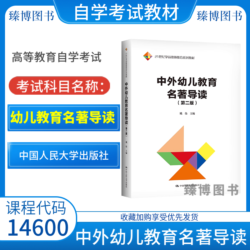 备考2026北京四川甘肃广东自考教材14600幼儿教育名著导读/中外幼儿教育名著导读第二版姚伟中国人民大学出版社学前教育专升本自考