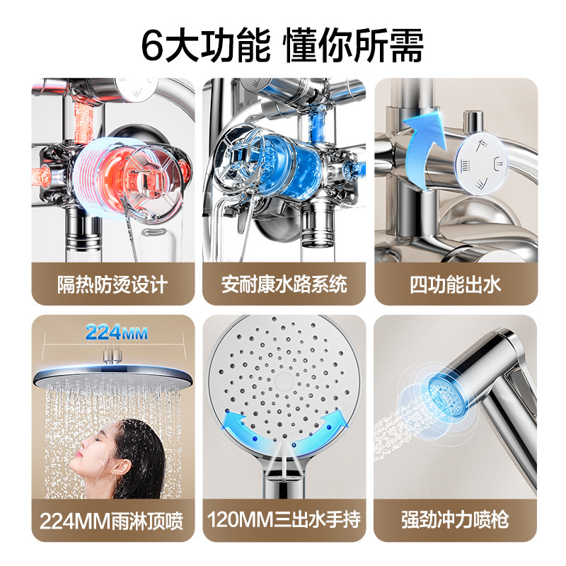 恒洁浴室沐浴器淋雨简易明装喷枪易洁花洒套装恒温卫生间家用955