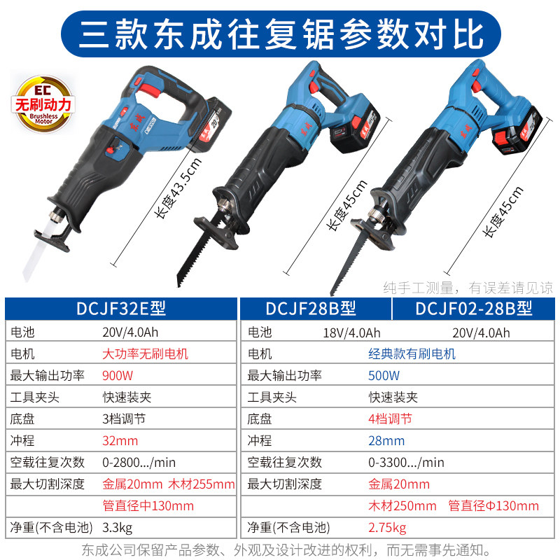 推荐理由:东成20V锂电往复锯工业电动马刀锯大功率伐木电锯木材金属切割机