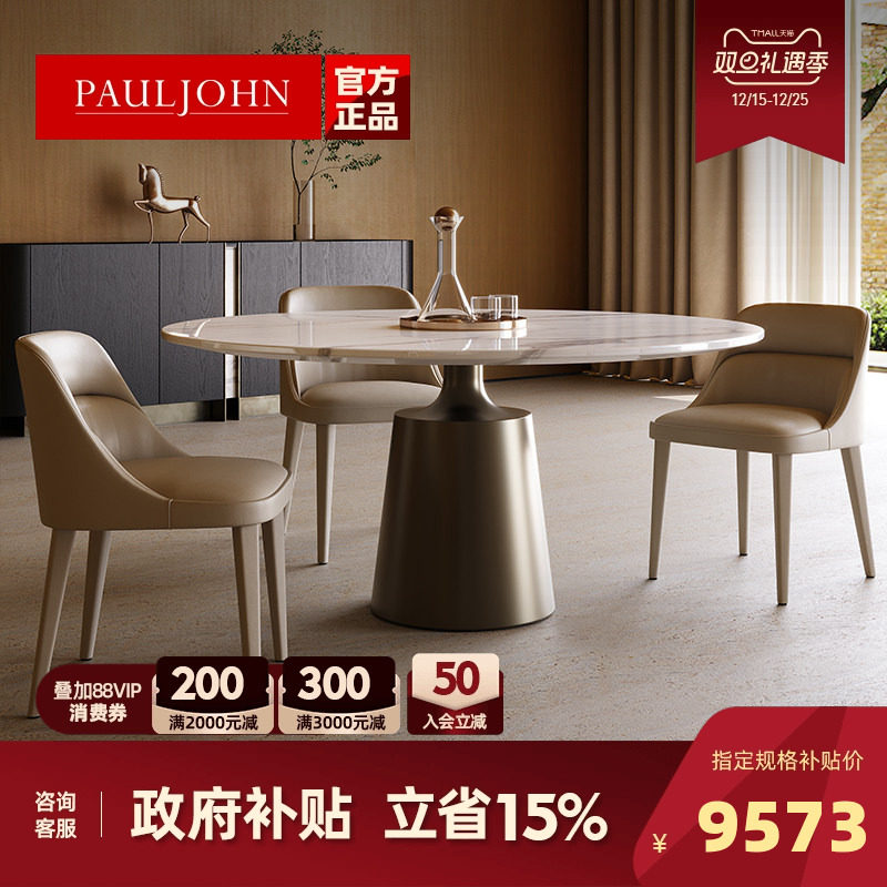 PAULJOHN意式极简奢石餐桌家用现代轻奢圆形大理石餐桌椅组合高端