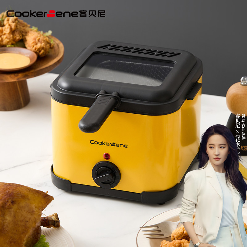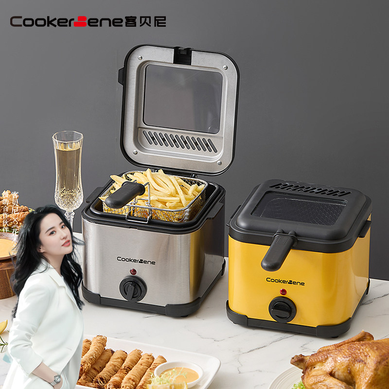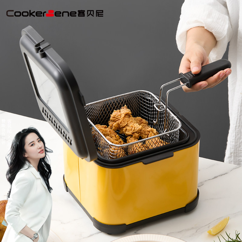 CookerBene家用油炸锅小电炸锅多功能带滤网炸薯条炸串控温电锅炉