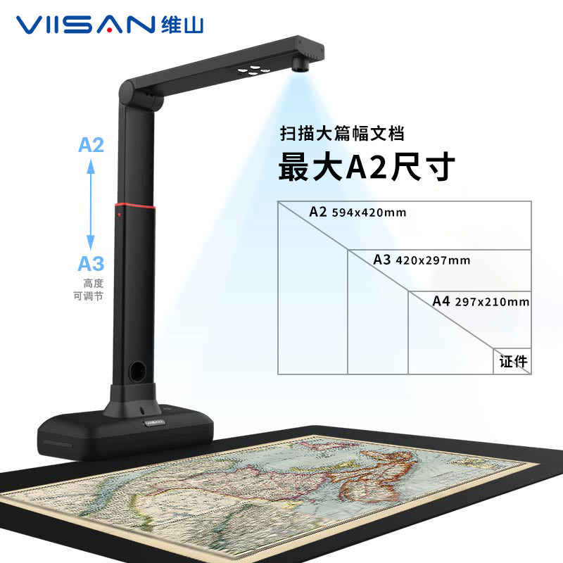 维山VIISAN 高拍仪高清扫描仪2300w工程图纸书籍成册A2自动扫描机试卷资料课本家用文件证件照片文档合同票据