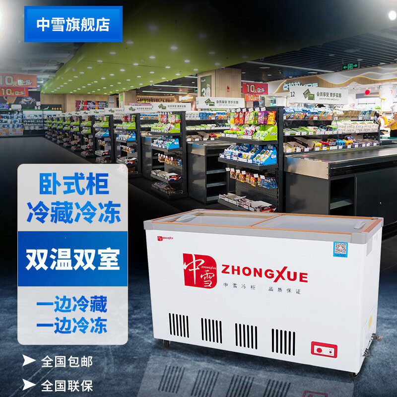 中雪卧式冰柜速冻商用冷柜双温冰箱冷藏保鲜冷冻展示柜玻璃门双门