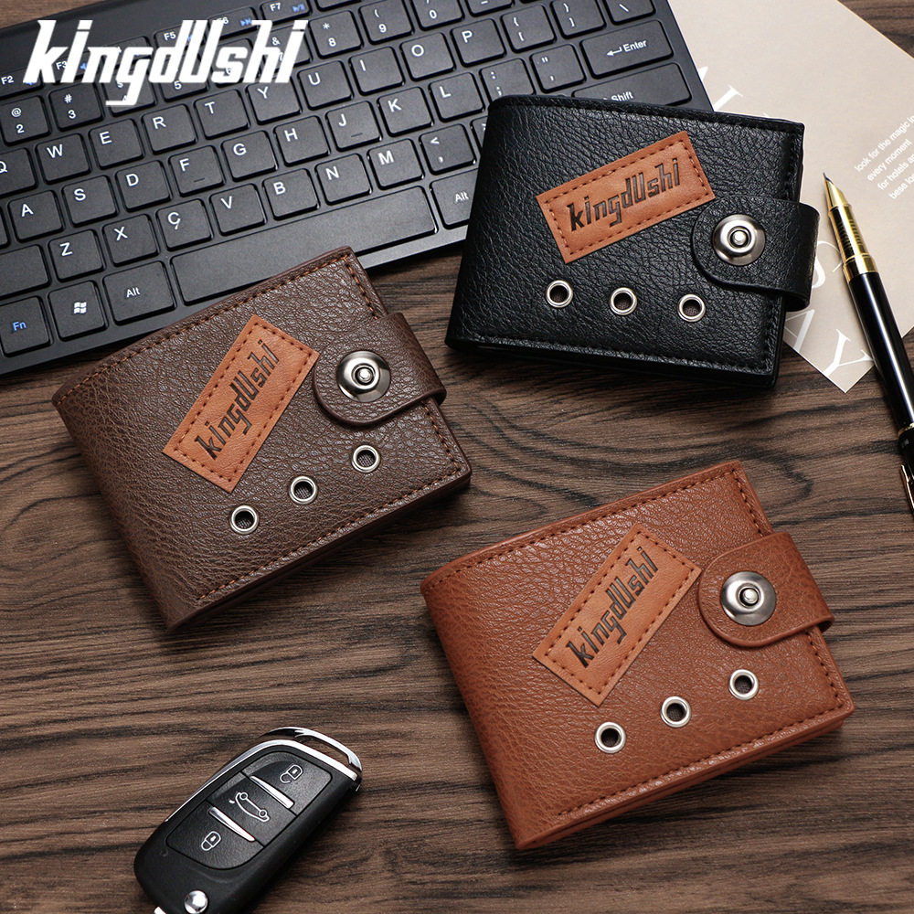卡包男式卡套大容量小零钱包一体短横款便携按扣字母撞色拼接