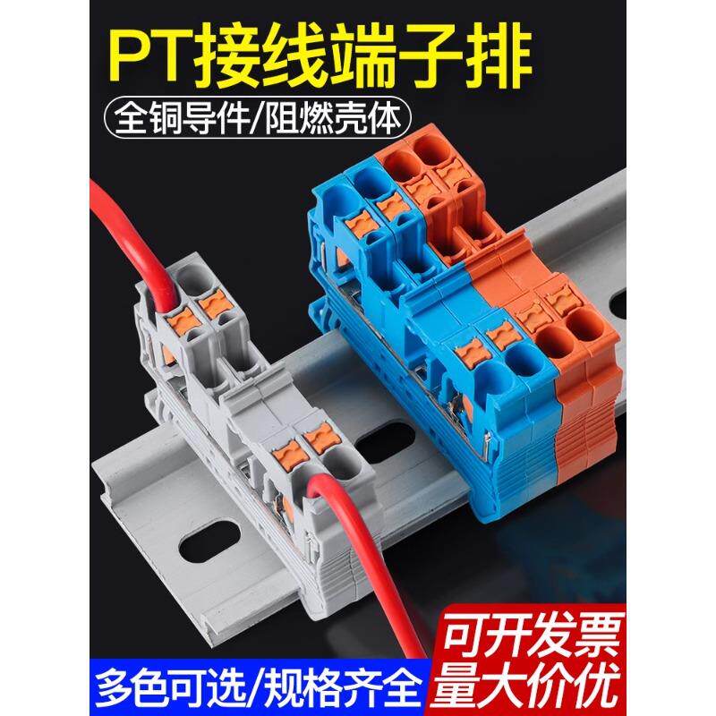 PT接线端子排快速免工具直插导轨式弹簧插拔组合连接排2.5/4/6/10