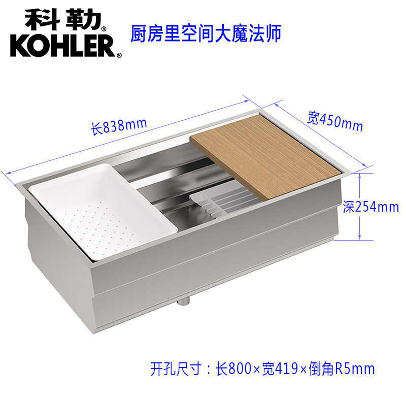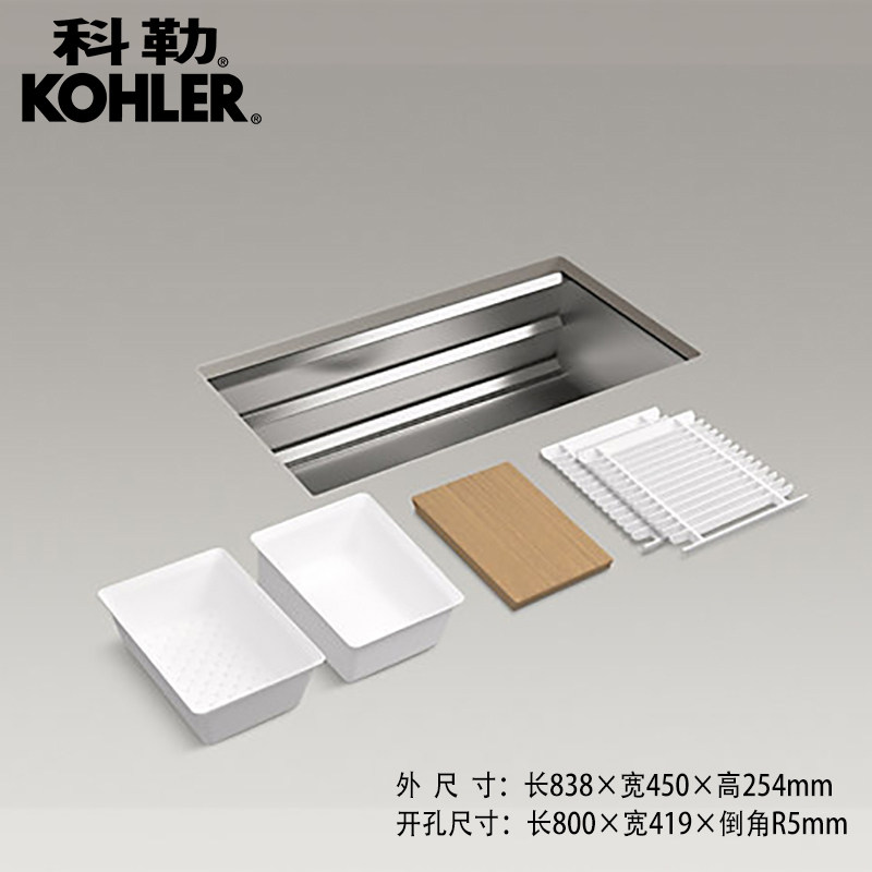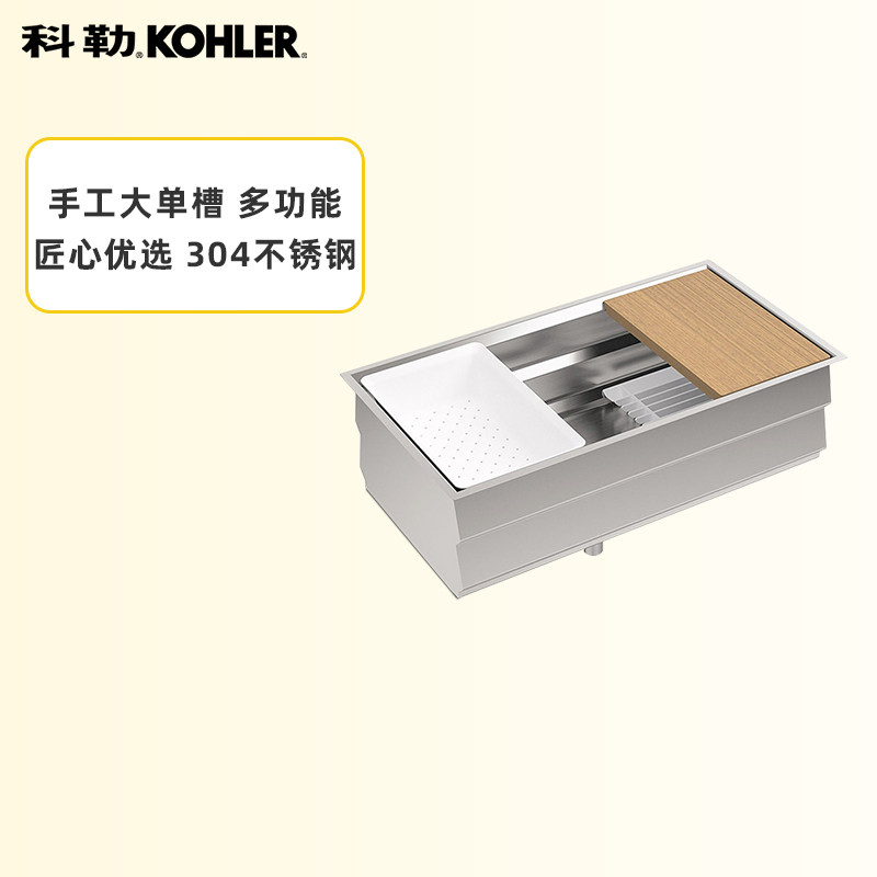 科勒水槽厨房大单槽台下加厚304不锈钢手工洗菜盆洗碗池厨盆23650